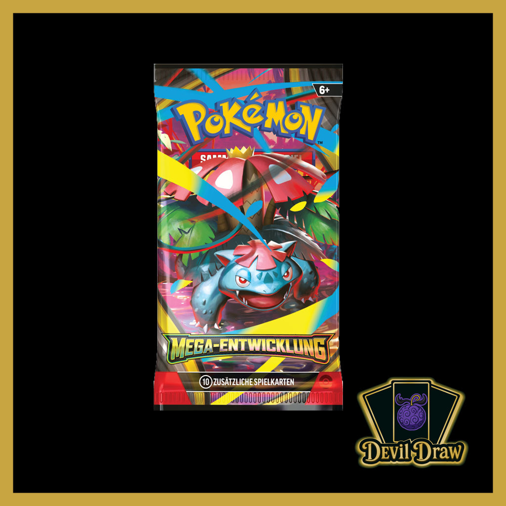 Das „Megaentwicklung Booster“ bringt die legendären Mega-Formen zurück ins Pokémon-Sammelkartenspiel! In jedem Booster warten spannende neue Karten, darunter mächtige Mega-Pokémon und eindrucksvolle Illustrationen. Perfekt für Sammler und Spieler, die die Ära der Megaentwicklungen feiern möchten.
