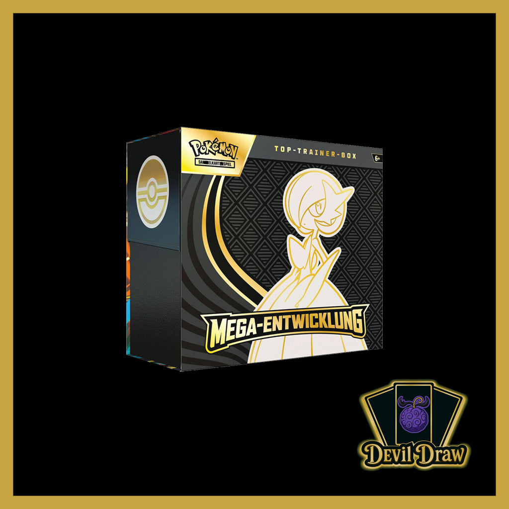 Die „Megaentwicklung Top Trainer Box – Mega Guardevoir“ ist ein edles Sammlerset im Design der eleganten Mega-Form von Guardevoir. Sie bietet alles, was Fans der Megaentwicklungen lieben – Boosterpacks, Zubehör und exklusive Karten im typischen Guardevoir-Stil.